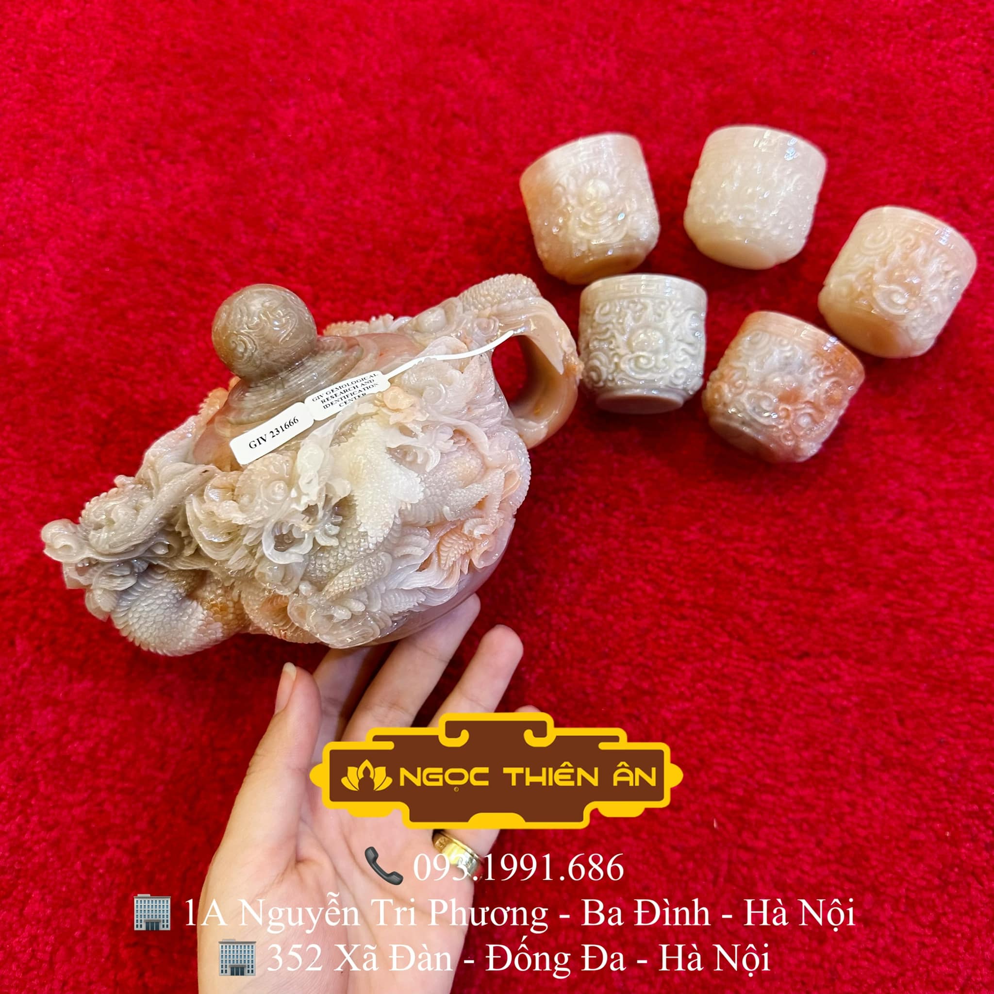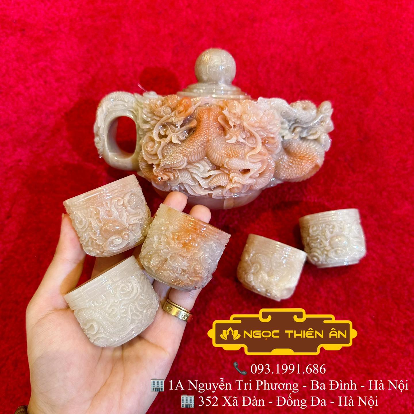 Bộ sản phẩm thu hút được nhiều sự yêu thích bởi sự trau chuốt và tỉ mỉ. Kết hợp cùng với kỹ thuật tạo hình độc đáo họa tiết hình rồng đắp nổi.
