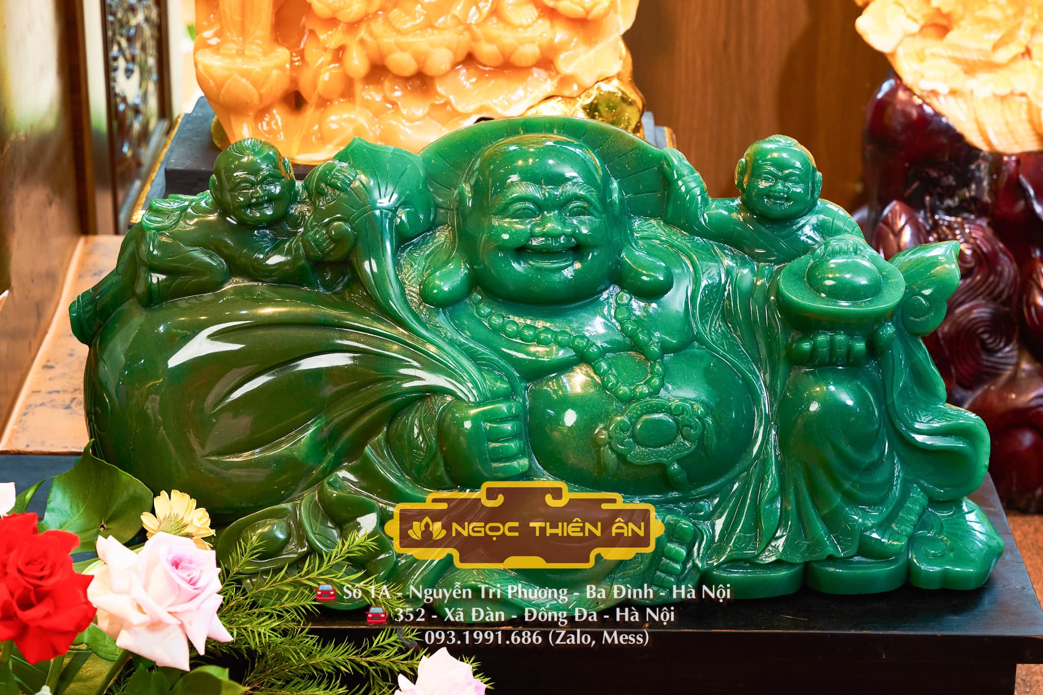 Tôn Tượng Phật Di Lặc chất liệu Thạch Anh Xanh nguyên khối do Nghệ Nhân tại NGỌC THIÊN ÂN chạm khắc thủ công